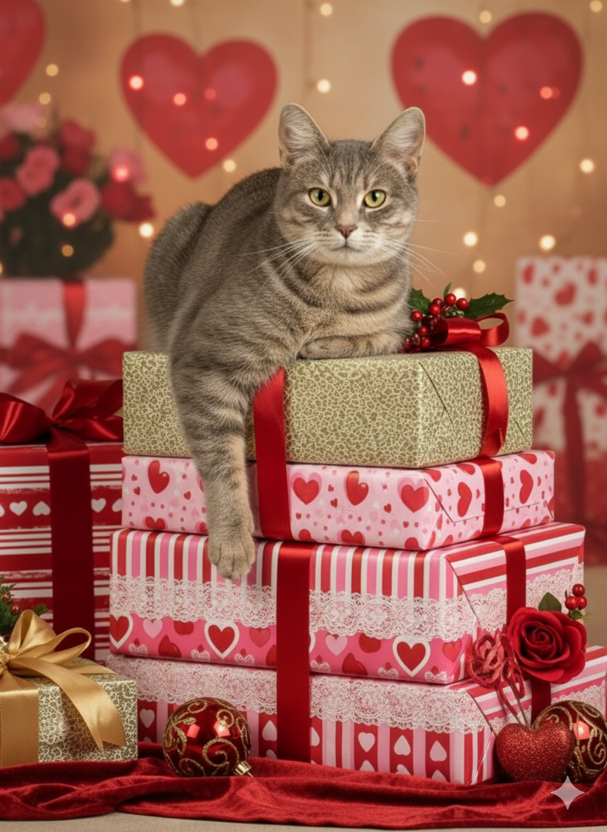 JoJo is about a year old in Jan 2026. She has been at the shop since October and is a hoot. She loves to climb, so counter surfing will be in her future. Come in to visit and she will likely be among many fragile items blending in. She is at a master level for not knocking things over. She is so playful and also affectionate. She must have someone special in her future because it’s crazy she hasn’t been adopted.
